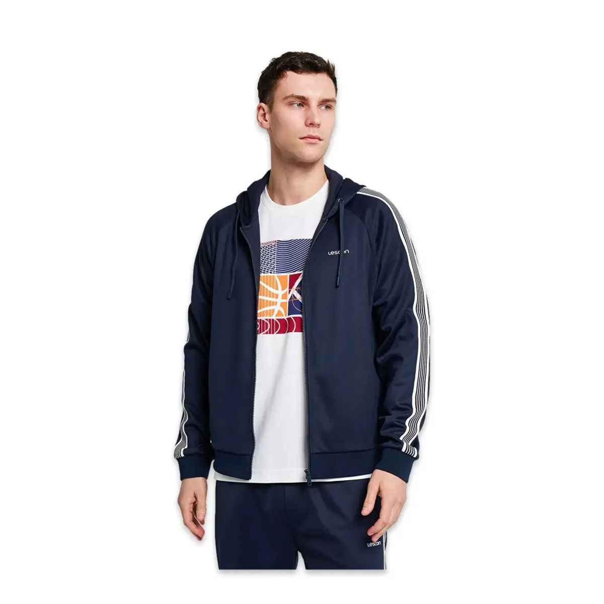 Lescon 26B-1052 Basketbol Fermuarlı Kapşonlu Ceket Lacivert Erkek Ceket