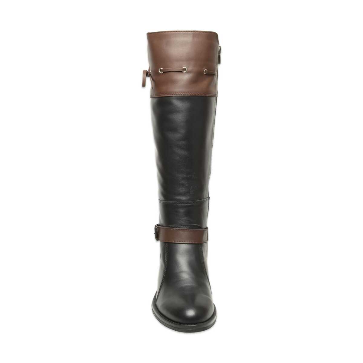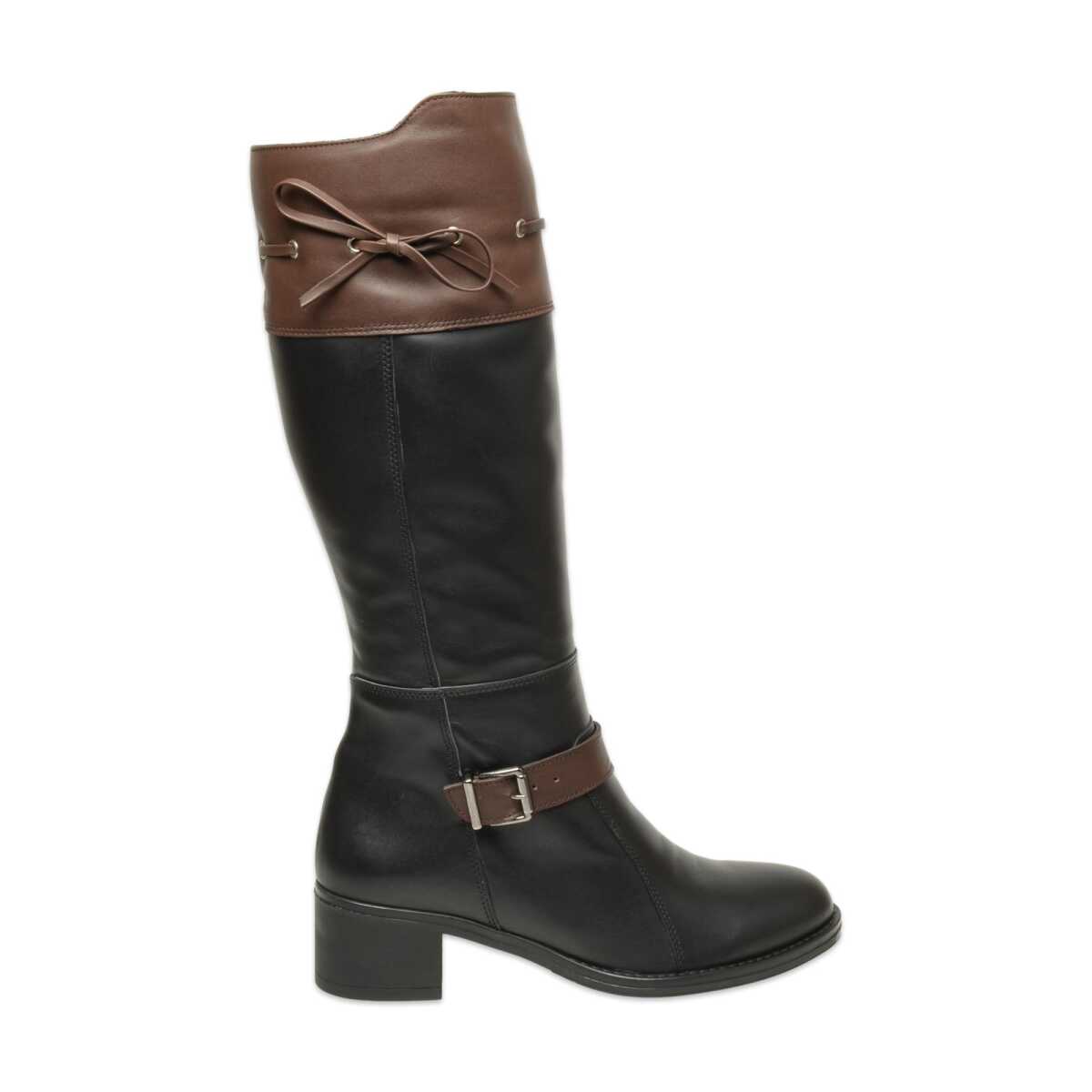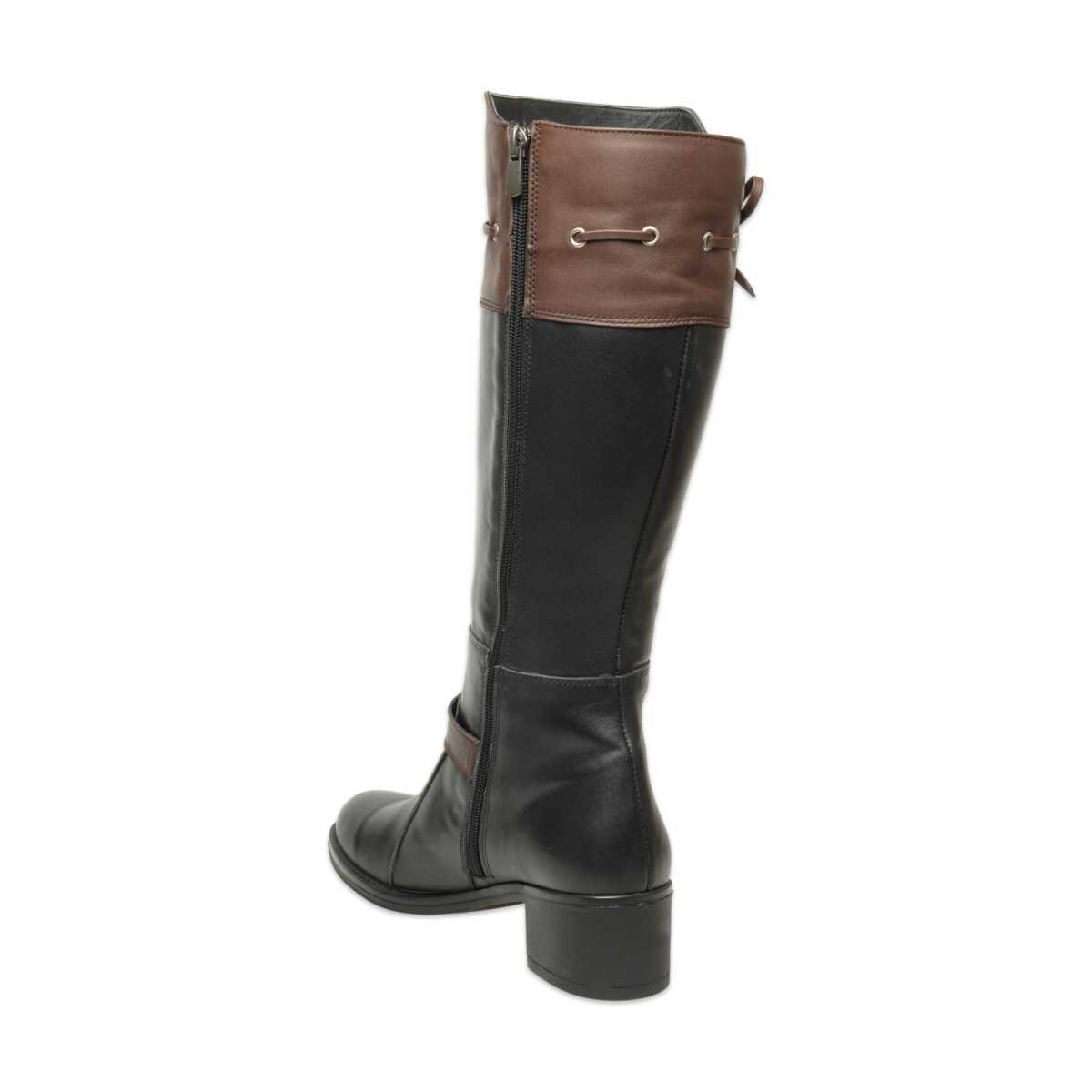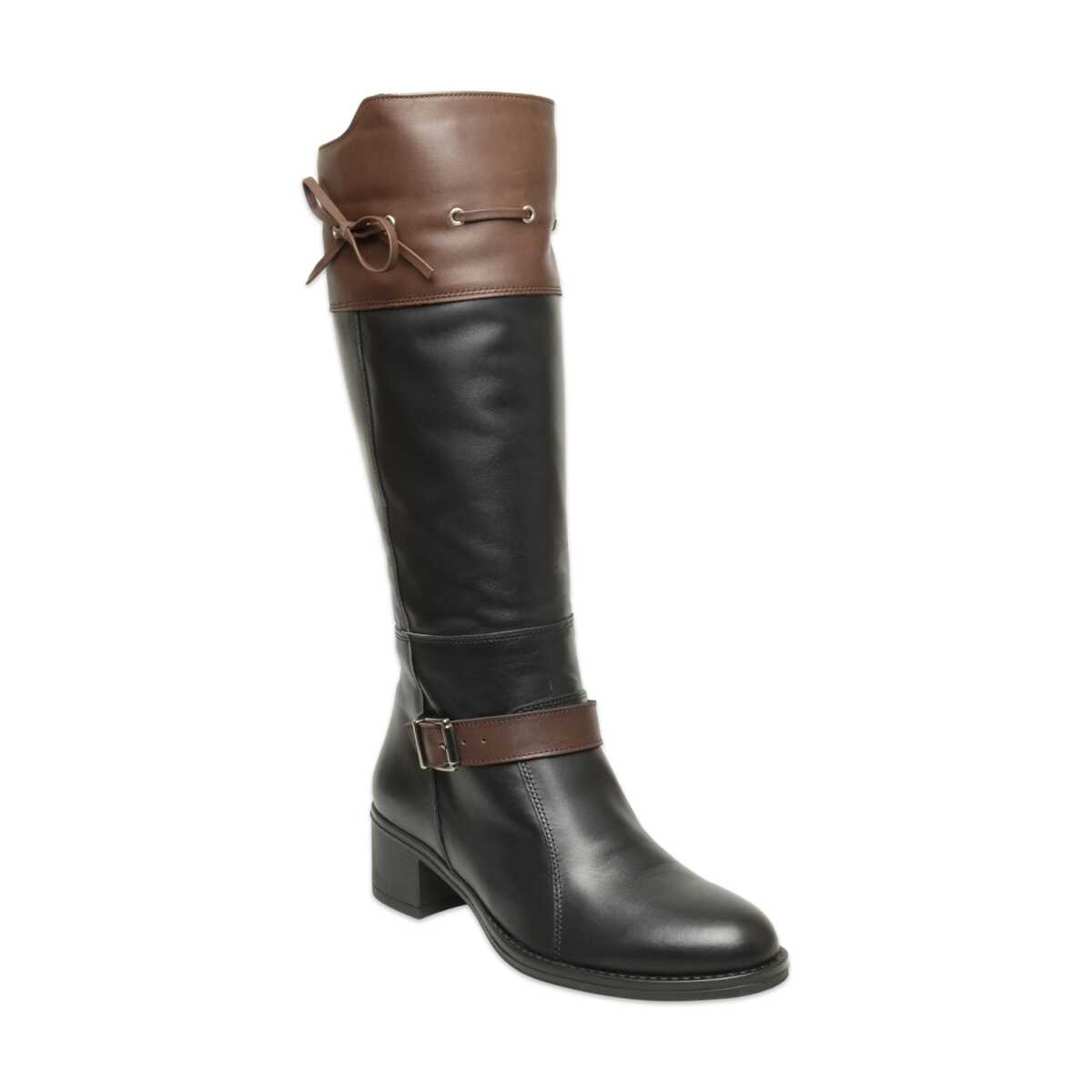 Mammamia D25Kc-2335 Kalin Topuklu Günlük Siyah-Kahverengi Kadın Çizme
